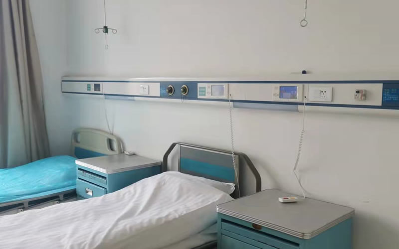 每間病房分別設(shè)立2-3張床位,每個床位安裝中心供氧系統(tǒng)氧氣終端、中心負壓吸引系統(tǒng)吸引終端、呼叫對講系統(tǒng)分機、開關(guān)插座和床頭照明。