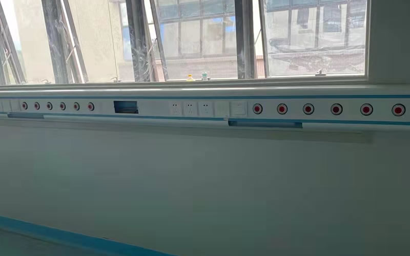 醫(yī)用氣體管道采用無縫脫脂304不銹鋼管,病房設(shè)備帶采用鋁合金防靜電噴涂技術(shù),終端選用德標氣體終端。