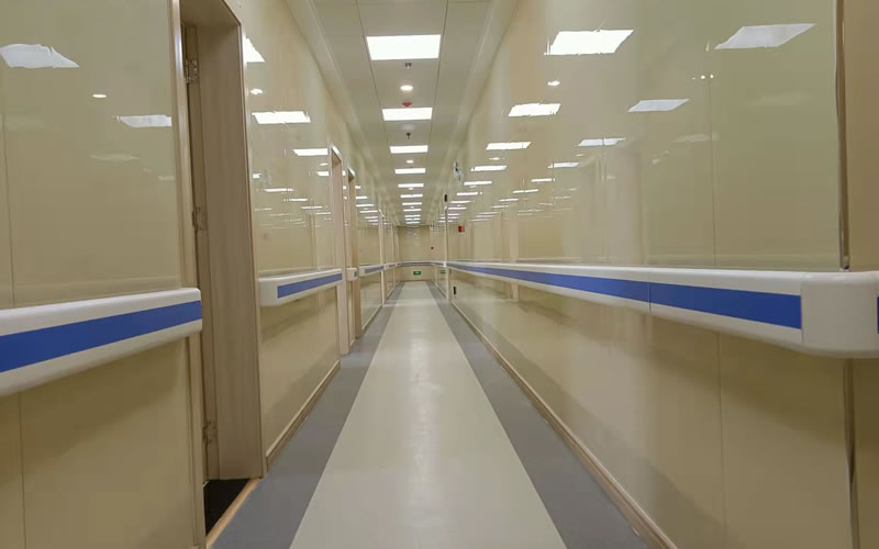 走廊安裝的鋁合金PVC防撞扶手,方便行走不便的人使用。