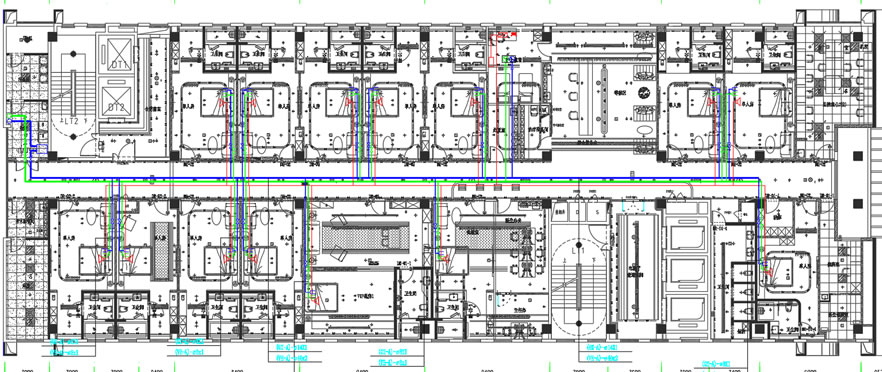 20、病房內(nèi)設(shè)備帶電源線2.5mm2的銅芯線應(yīng)預(yù)留其位置,詳間各管道布置圖。