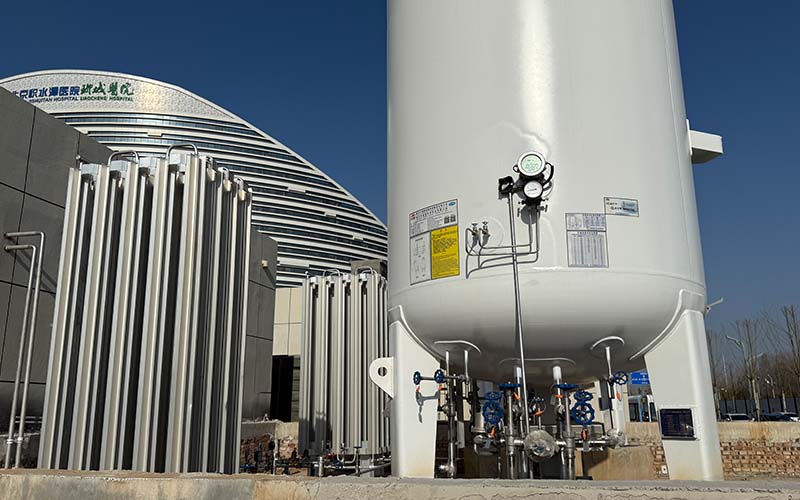 工作原理是通過(guò)槽車外購(gòu)液態(tài)氧,儲(chǔ)存于醫(yī)院真空絕熱儲(chǔ)罐,經(jīng)汽化調(diào)壓后輸送至管網(wǎng)。其供氣可靠性高,儲(chǔ)罐容量可滿足數(shù)日至數(shù)周用量;氧氣純度穩(wěn)定在99.5%以上,符合醫(yī)用標(biāo)準(zhǔn);需設(shè)置符合安全規(guī)范的儲(chǔ)罐區(qū),并依賴外部氧氣供應(yīng)鏈的穩(wěn)定性。